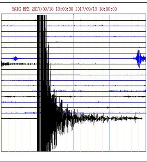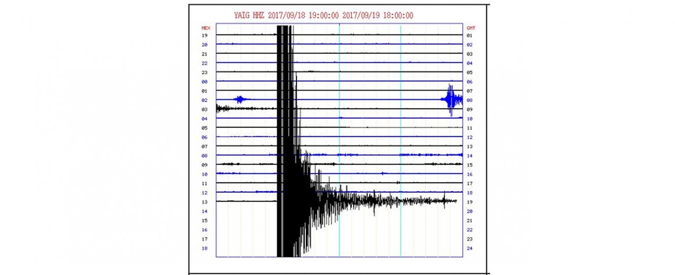 Pie de foto: Registro del sismo del 19 de septiembre de 2017 obtenido en una estación de banda ancha del Servicio Sismológico Nacional. Imagen: Tomada del SSN.