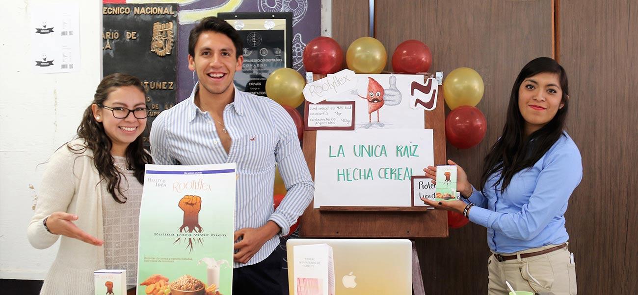 Pie de foto: Los creadores Aileen Chávez Palma, Luis Gerardo Gutiérrez Ratia y Sabrina Lamadrid Meza aseveraron que este producto regula los niveles de energía y glucosa en el cuerpo, además de controlar el estrés provocado por las diferentes actividades del día. Imagen: IPN