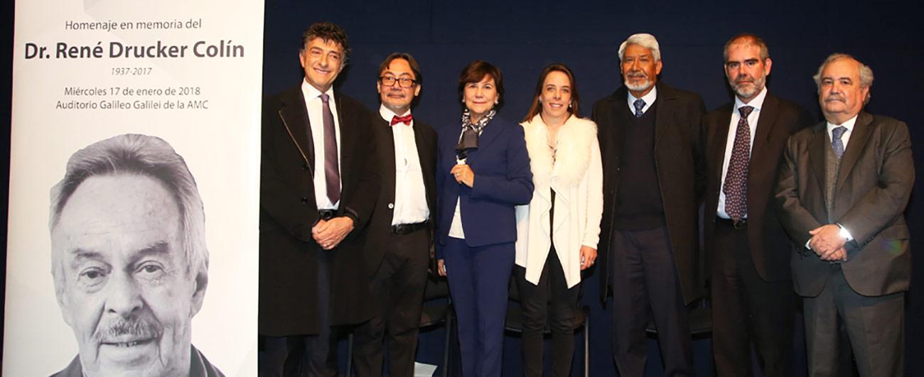 La Academia Mexicana de Ciencias (AMC) y la familia del doctor René Drucker Colín realizaron este martes un emotivo homenaje en memoria del investigador que falleció el 17 de septiembre de 2017. Reunidos en el auditorio Galileo Galilei de la AMC, los asistentes, entre ellos académicos, familiares y amigos, compartieron los logros y aportaciones que hizo este científico mexicano.