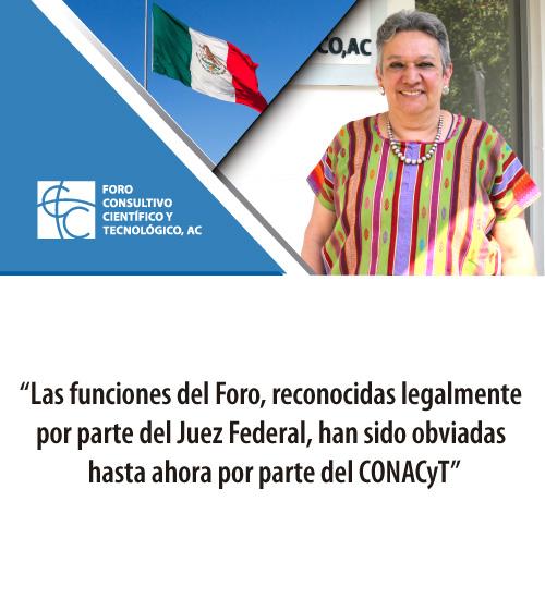 Realmente es un precedente muy importante que la solicitud de amparo se conceda a favor del Foro Consultivo Científico y Tecnológico porque se reconoce legalmente el estatus de esta asociación en la ley, así como la responsabilidad que tiene el Consejo Nacional de Ciencia y Tecnología (CONACyT) de otorgarle los recursos necesarios para su funcionamiento sin que se condicione su carácter autónomo, ni las actividades de vinculación que tiene que realizar con los actores del sector de ciencia, tecnología e innovación (CTI), opinó la doctora Gloria Soberón.