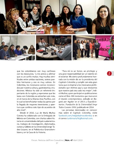 México en Colombia, con charlas sobre his- el correo luzdemaria76@hotmail.com.