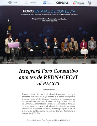 rá el Foro Consultivo Científico y Tecnológico para la futura