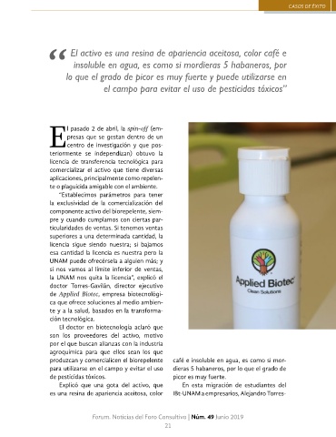 es una resina de apariencia aceitosa, color IBt-UNAM a empresarios, Alejandro Torres-