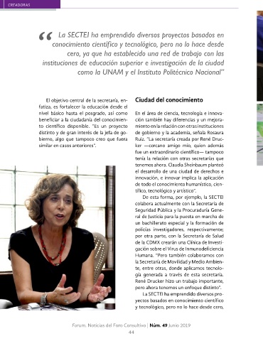 El objetivo central de la secretaría, en- Ciudad del conocimiento