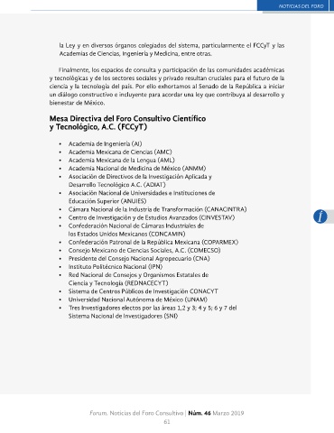 Forum. Noticias del Foro Consultivo | Núm. 46 Marzo 2019