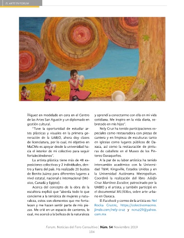 concierne a la temática de mujeres y natu- no en Oaxaca. sororidad y promover así una producción con materiales como plastilina y barro