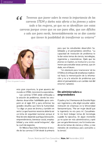 mundo es STEM, mencionó la especialista. De administradora a siliente y con pensamiento flexible. Su per-