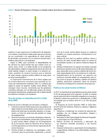 Grá ca 1. Número de Psiquiatras y Psicólogos en unidades medicas de la SSA por entidad federativa. 5. Fomentar la investigación en salud mental y el desarro-
